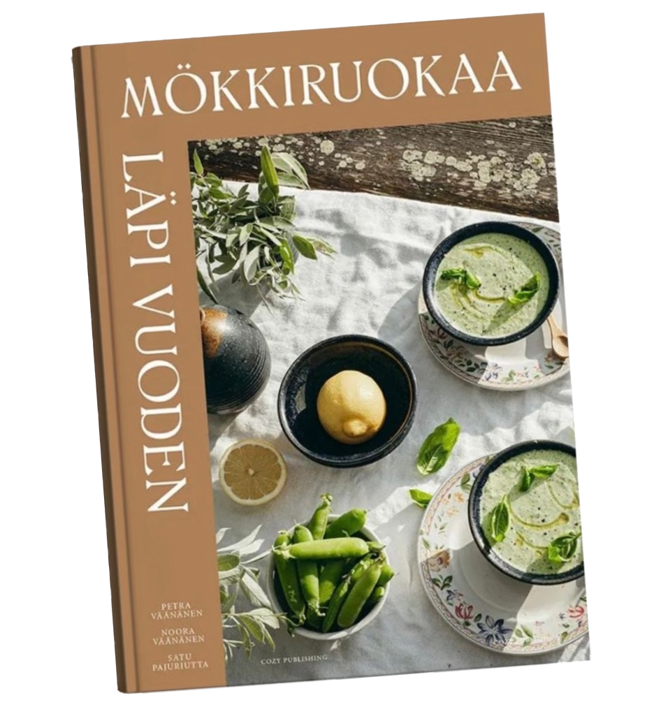 Suomen upeaan luontoon kutsuva mökkiruokakirja on enemmän kuin reseptikokoelma. Kokkaavien kaksosten Petra ja Noora Väänäsen sekä toimittaja Satu Pajuriutan teos tarjoaa kulinaarisen matkan: kesäiseltä laituripiknikiltä talven lämmittävän kaakaobaarin äärelle, syksyn sieniretkien yltäkylläisyydestä kevään villiyrttien rikastamaan pöytään.