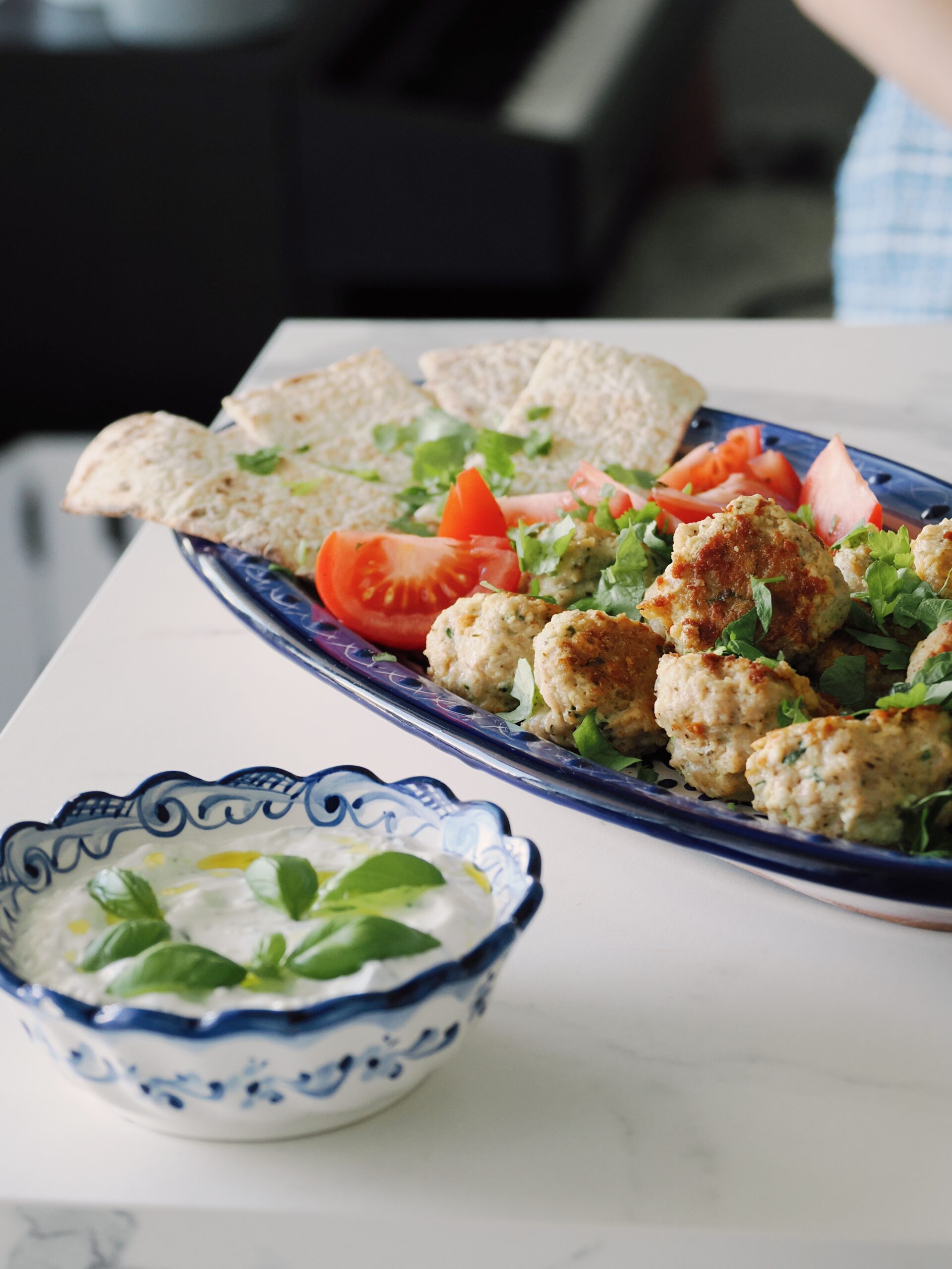 Sekoita jogurttikastikkeen ainekset keskenään ja laita jääkaappiin maustumaan hetkeksi.