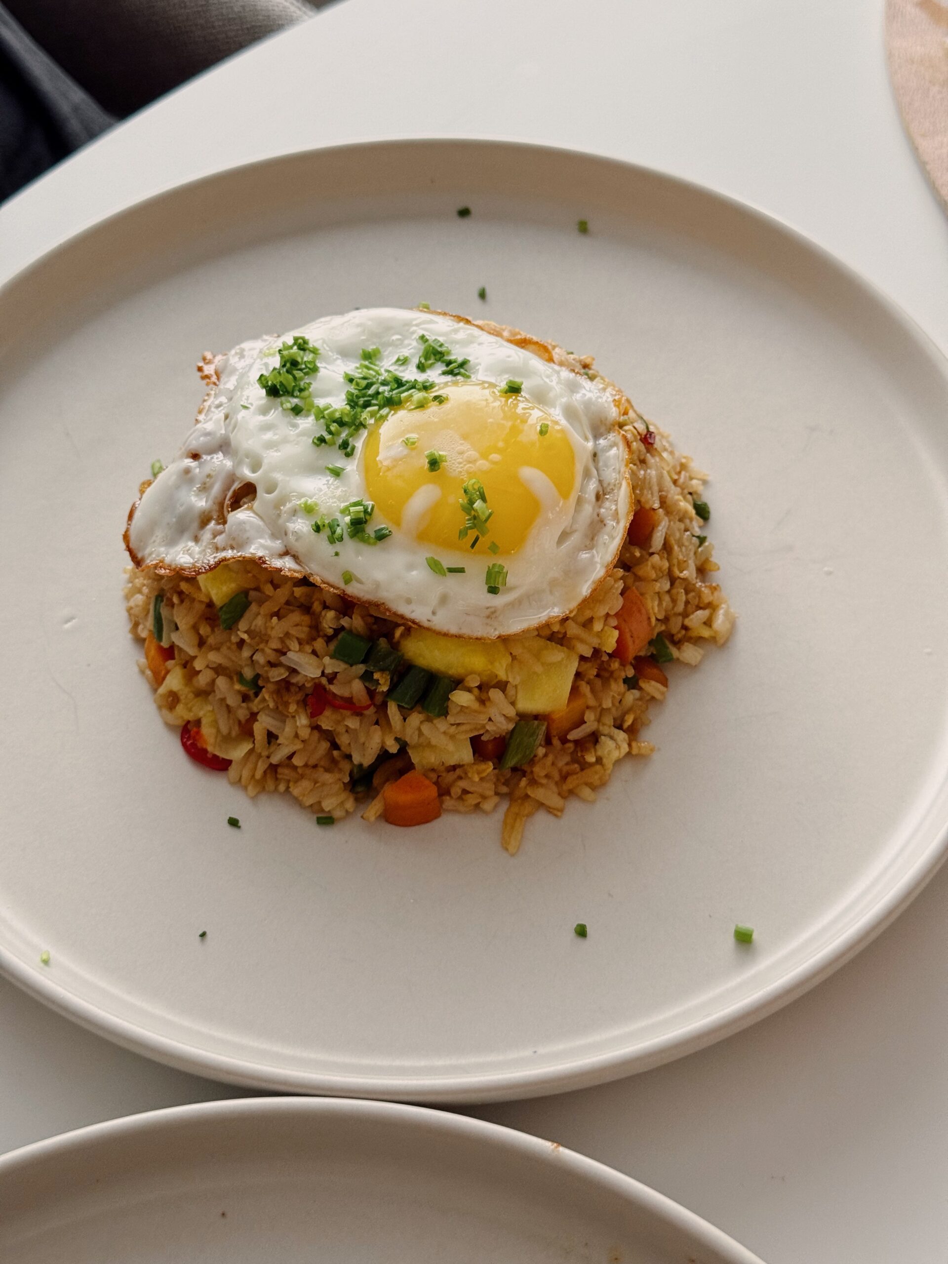 Paistettu riisi ananaksella on nopea ja helppo arkiruoka, joka valmistuu kätevästi ylijäämäriisistä. Makea ananas, rapeat kasvikset ja aasialaiset maut tekevät tästä paistetusta riisistä koko perheen suosikin. Tämä resepti on helposti muunneltavissa: lisää joukkoon katkarapuja, kanaa tai nauti sellaisenaan kasvisversiona.