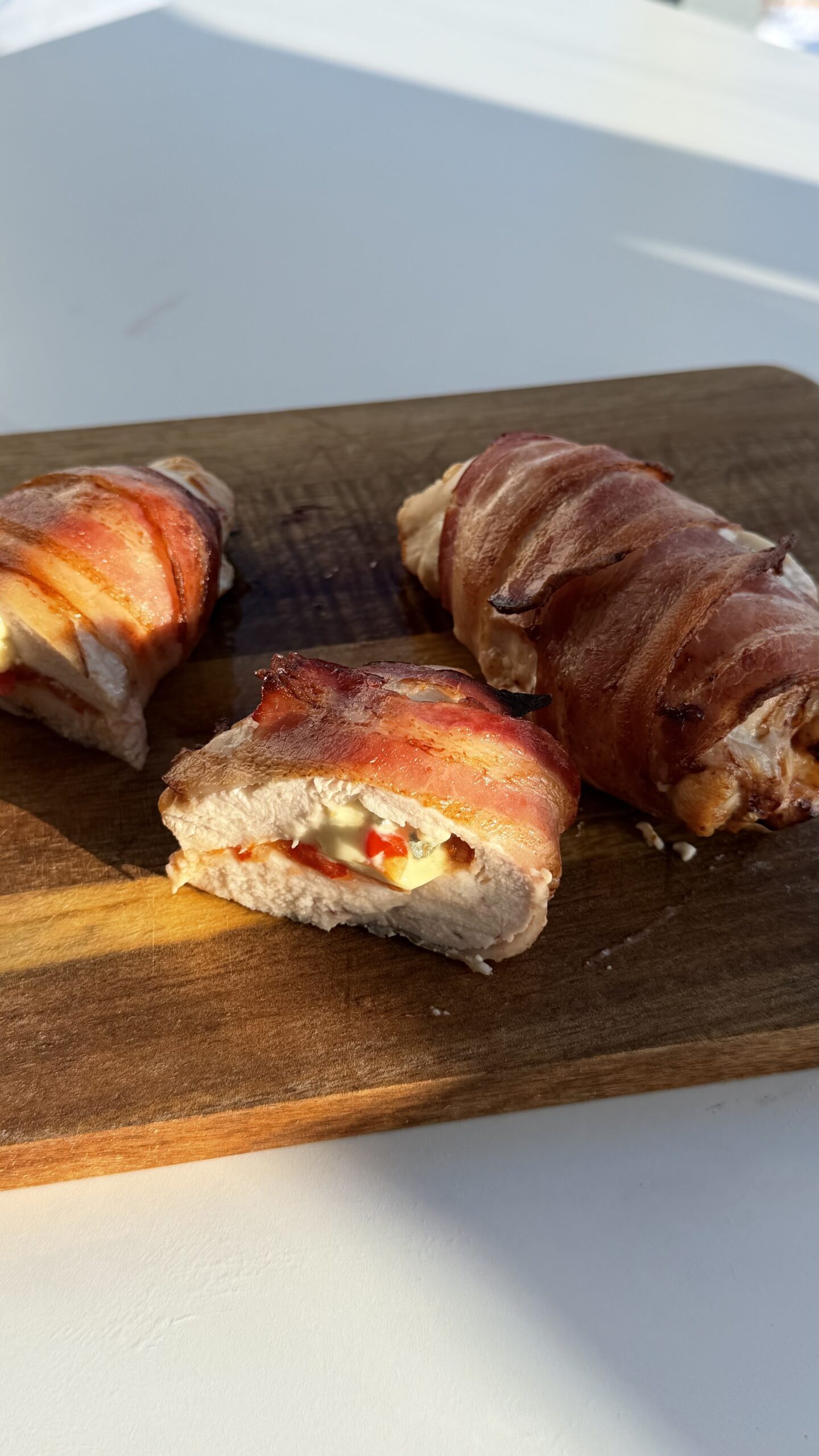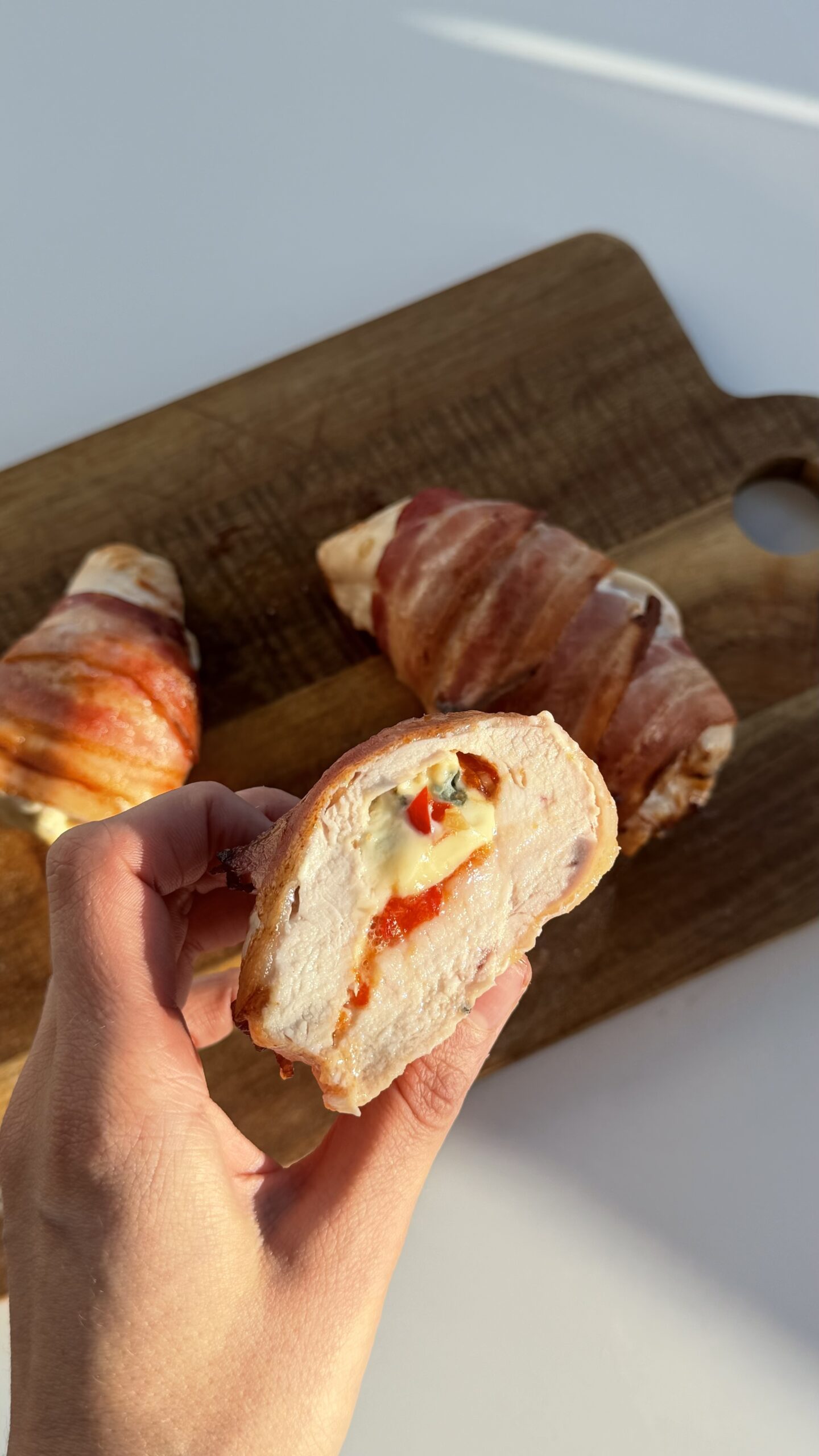 Mehevä aurajuustolla ja paholaisen hillolla täytetty kanan rintafilee, käärittynä rapeaan pekoniin, on täydellinen yhdistelmä makeaa, tulista ja suolaista. Tämä helppo kanaresepti onnistuu niin airfryerissa kuin uunissakin ja sopii arki-illalliselle tai viikonlopun näyttäväksi pääruoaksi. Jos etsit kanareseptiä, joka on mehukas, maukas ja varma valinta vieraille, tämä resepti kannattaa tallentaa.