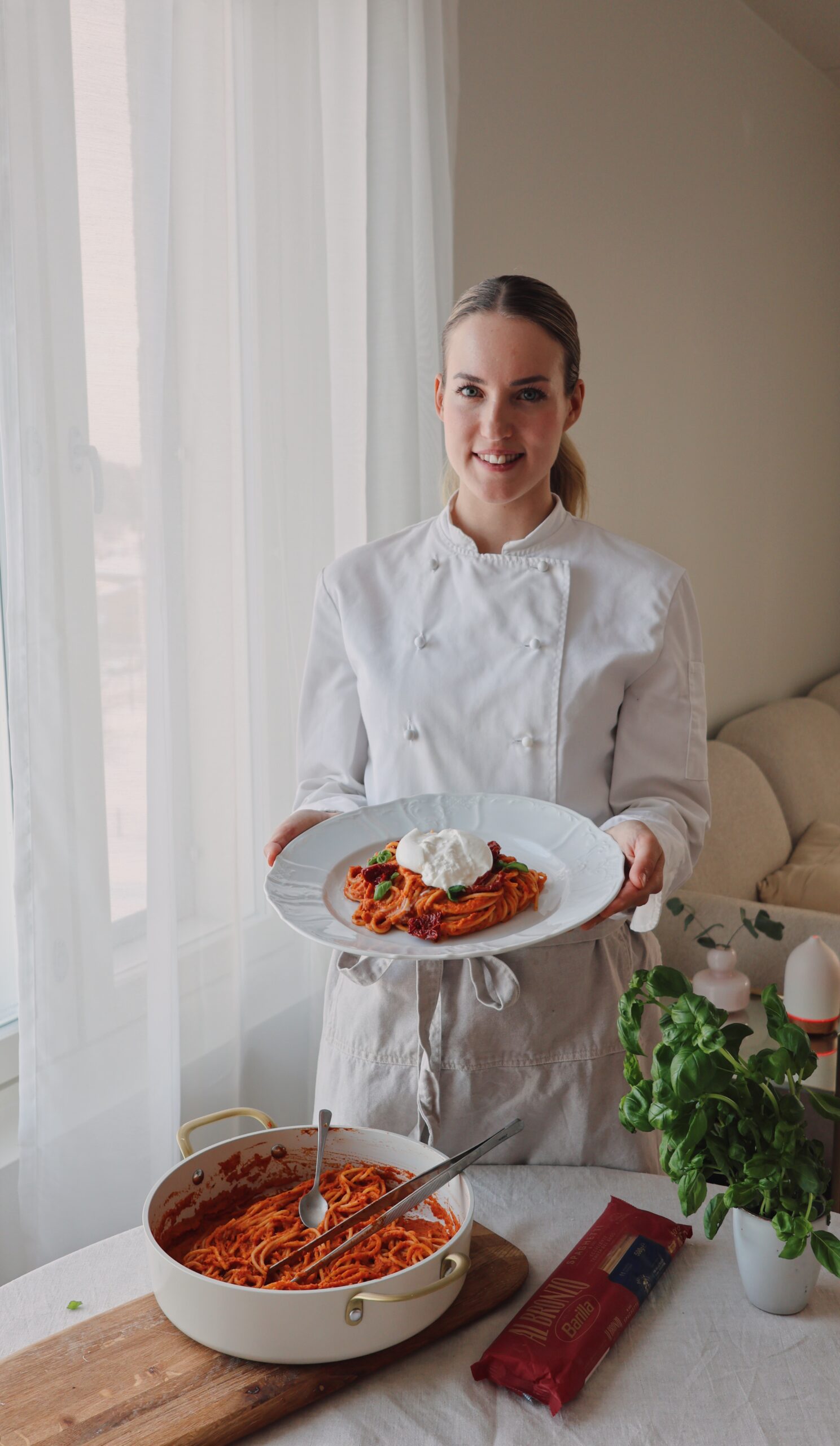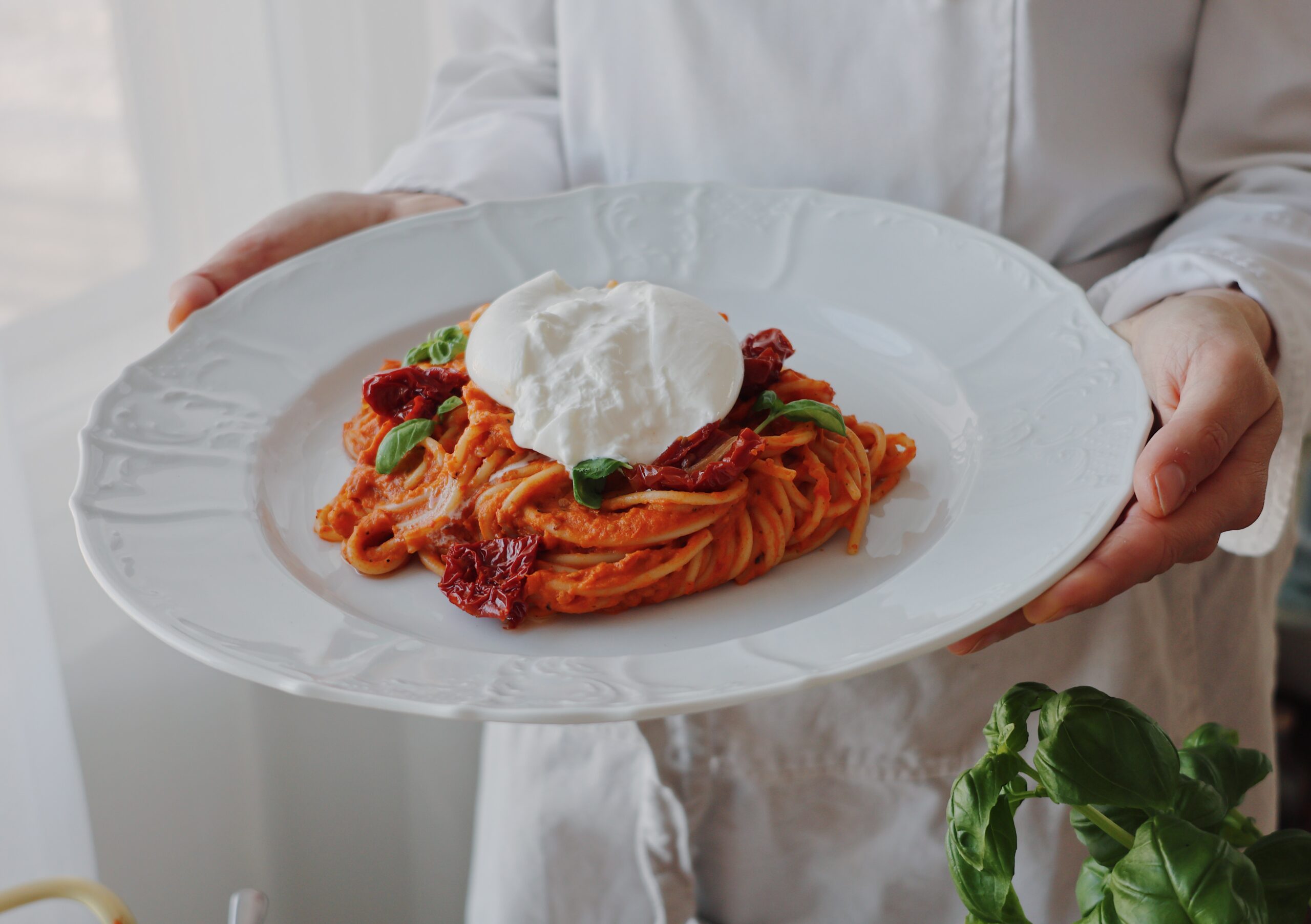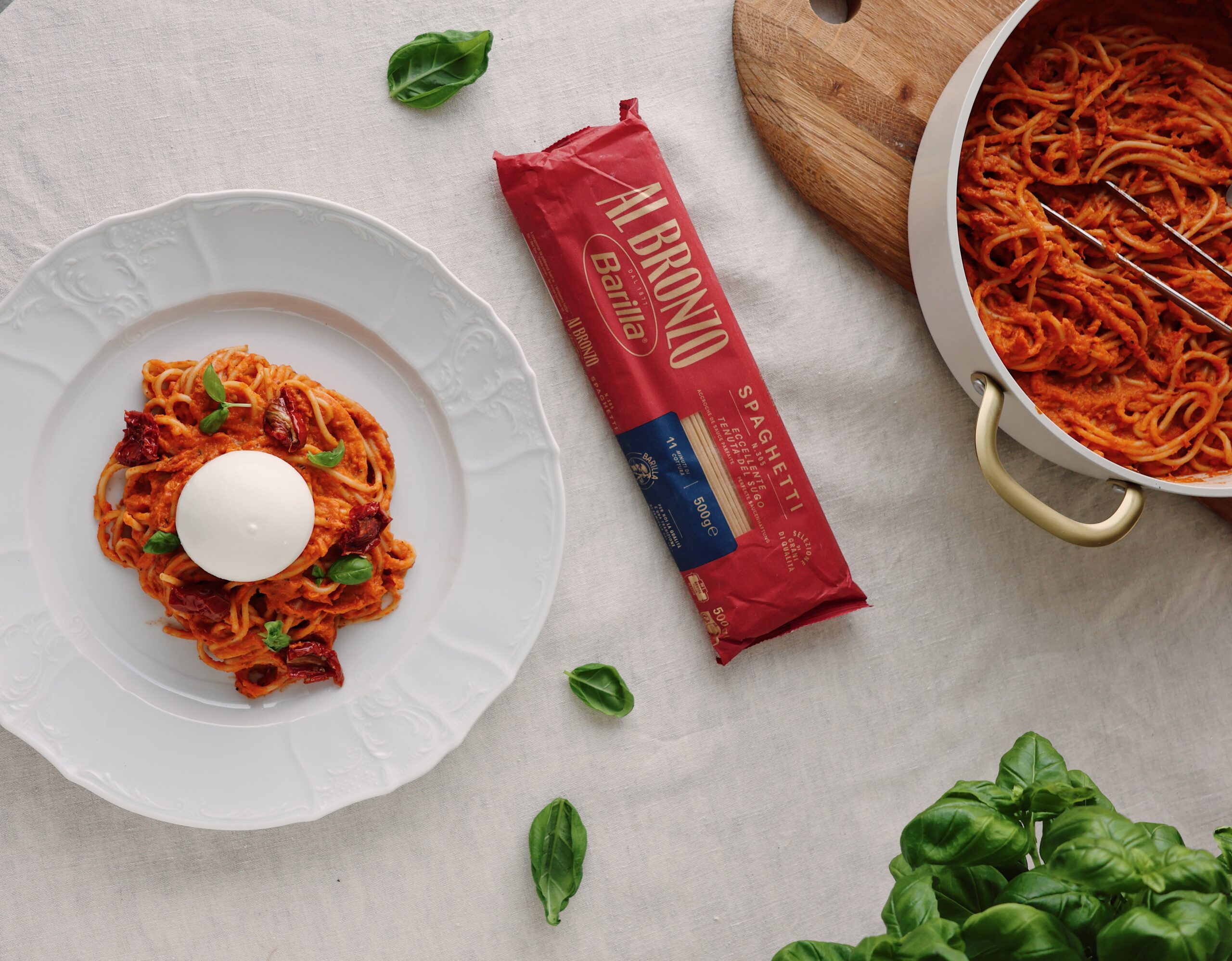 Salaisuus piilee pastan rakenteessa: pronssimuotilla valmistettu Barilla Al Bronzo spagetti sitoo kastikkeen tehokkaasti, jolloin lopputulos on erityisen täyteläinen ja intensiivinen. Pehmeä burrata viimeistelee annoksen ja tekee tästä spagetista ylellisen mutta helposti toteutettavan suosikin. ✨