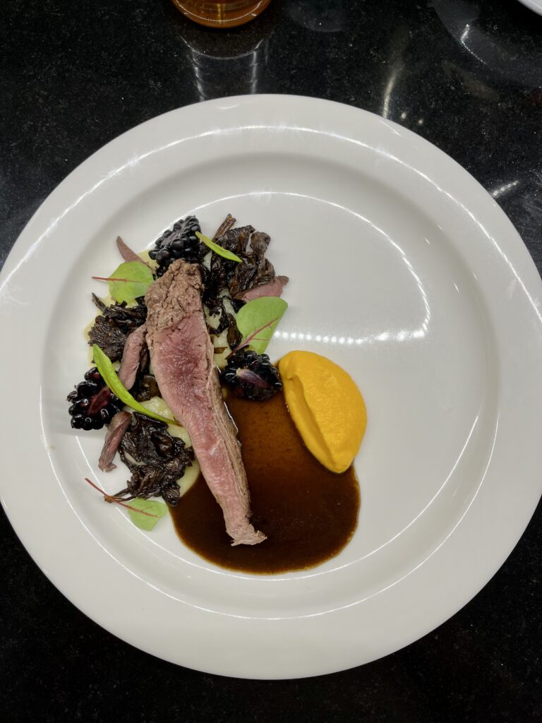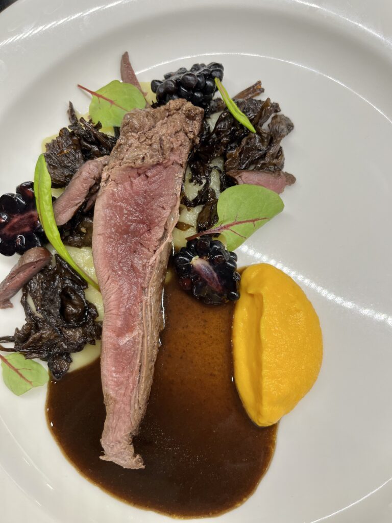 Teeri saa kaverikseen herkullisen sauterneskastikkeen, puikulamuusia, makeaa porkkanapyrettä, karhunvadelmia ja viinisuolaheinää. Teeren valmistus rangassa takaa herkullisen mehukkaan lopputuloksen.
