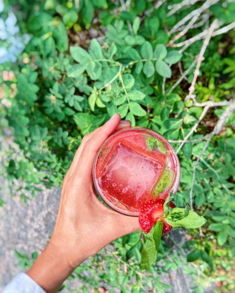 Mansikka jäätee mocktail