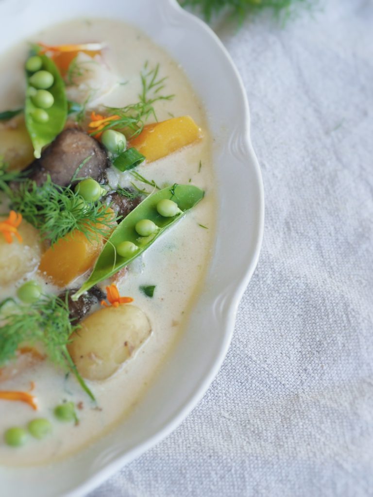 Loppukesän keitto on meidän versio kesäkeitosta, joka syntyy satokauden herkullisista kasviksista. Herkullinen kesäkeitto valmistuu nopeasti ja keitossa hyödynnetään alkusyksyn sesongissa olevia raaka-aineita, kuten aromaattista maa-artisokkaa, puutarhan herneitä sekä kukkakaalia.