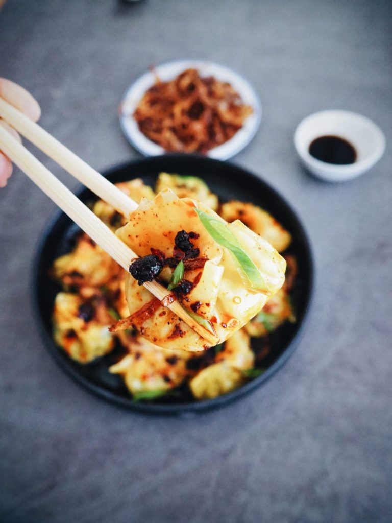 - Höyrytä bambukorissa 6 minuuttia. Tarjoile chiliöljyn kanssa.
