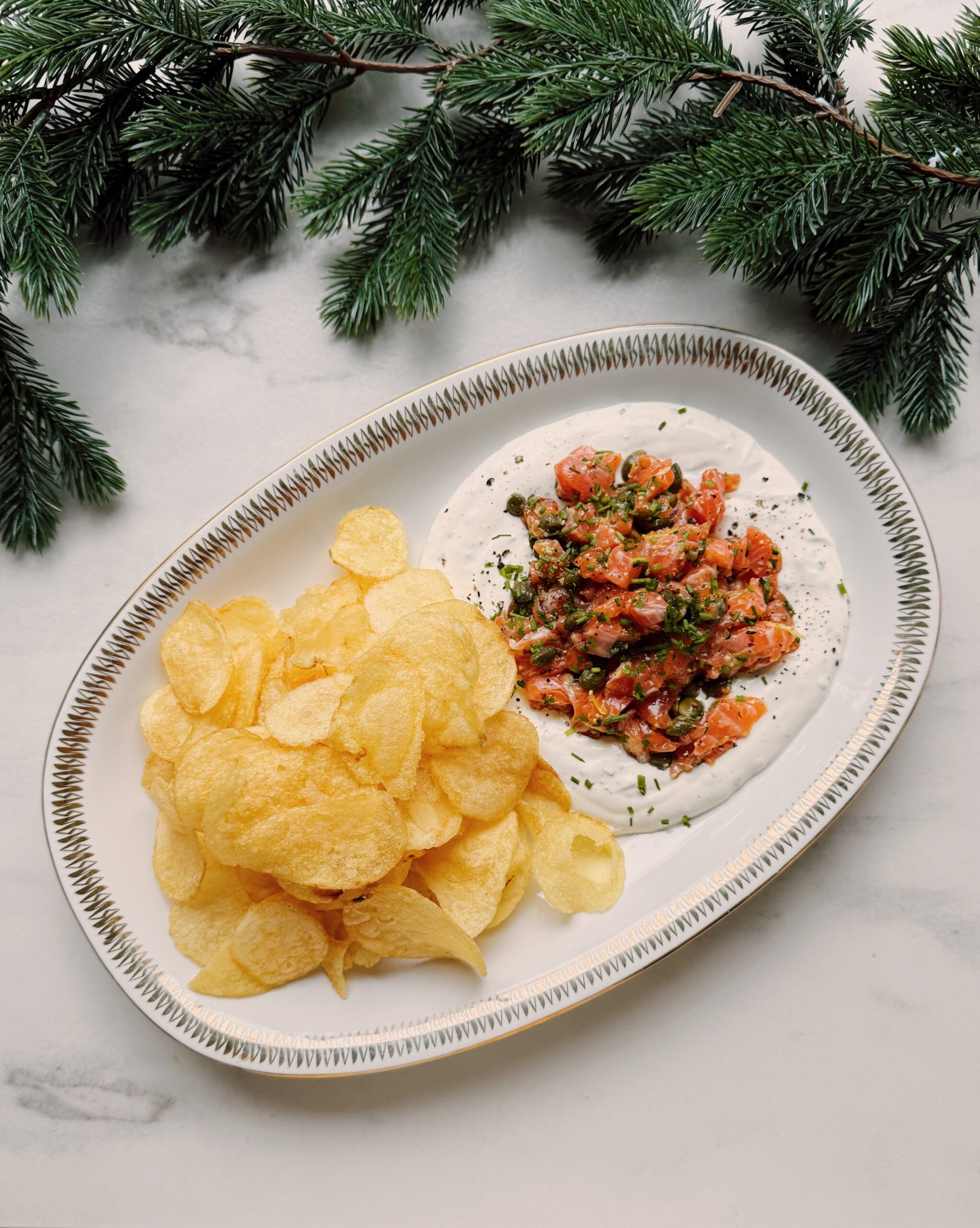 Elegantti lohitartar-dippi on täydellinen suupala loppuvuoden kekkereihin, tai isänpäivän pöytään, kun haluat hemmotella isää jollain erityisellä. Kokeile myös suussa sulavaa kylmäsavulohicarpacciota.