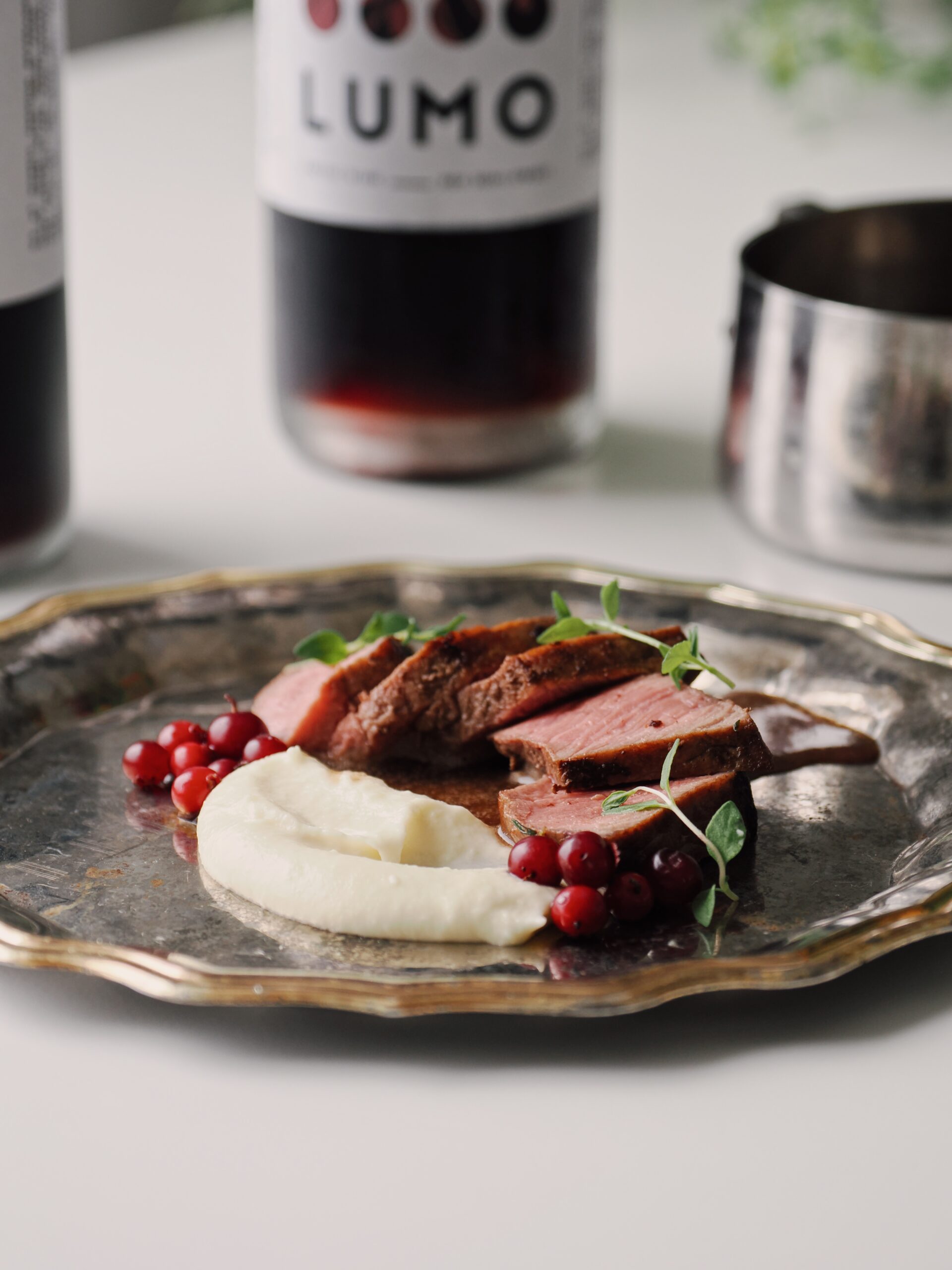 Peuran fileetä, mustaherukkakastiketta ja palsternakkapyreetä