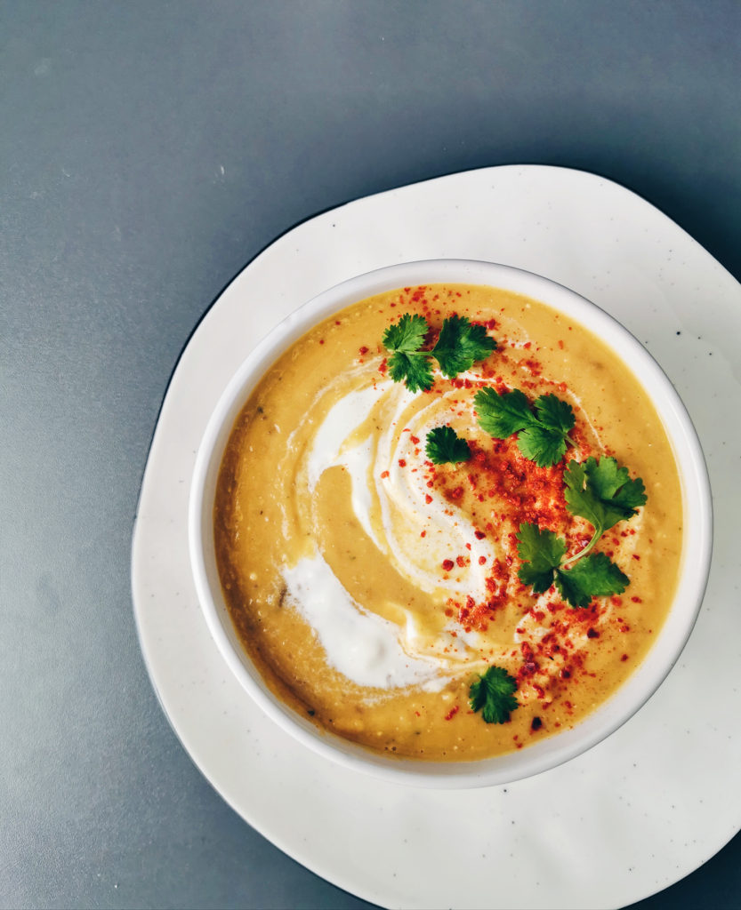 Nopea arkikeitto, joka sisältää terveellisiä mausteita, linssit tuovat siihen lisää ravinto-arvoa ja proteiineja, sekä kaiken lisäksi tämä resepti on vegaaninen, maidoton ja gluteeniton.