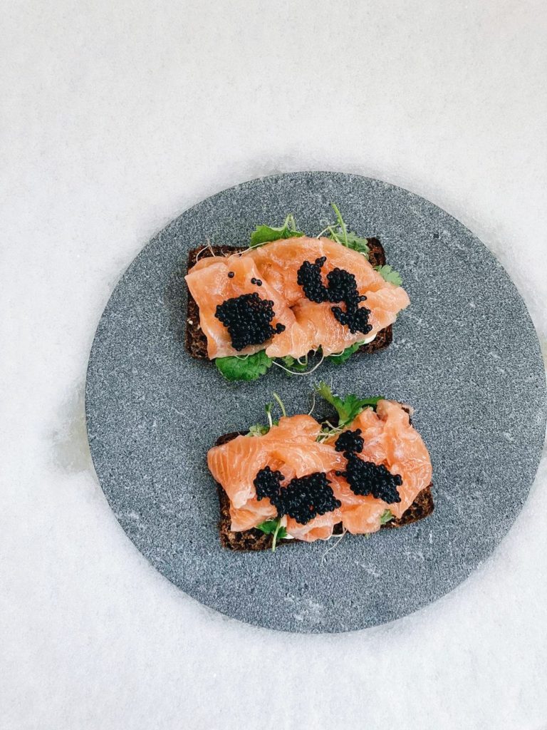 - Koristele ginillä graavattu lohi viipaloidulla kurkulla, piparjuurella, merilevä kaviaarilla ja yrteillä. Tarjoile esimerkiksi saaristolaisleivän ja tuorejuuston kanssa.