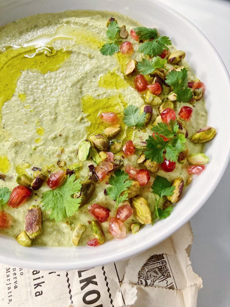 Olet varmaan kuullut punajuuri-, porkkana- ja avocadohummuksesta? Hummus on kikherneistä valmistettua tahnaa, jota voi tarjoilla esimerkiksi dippinä tai levitteenä. Herkullinen pistaasihummus syntyy kikherneistä, pistaaseista ja koriaterista. Korianterin ansiosta hummus saa raikasta makua ja kaunista väriä. Pistaasihummus on nopea ja herkullinen lisä niin arkeen kuin juhlaan!