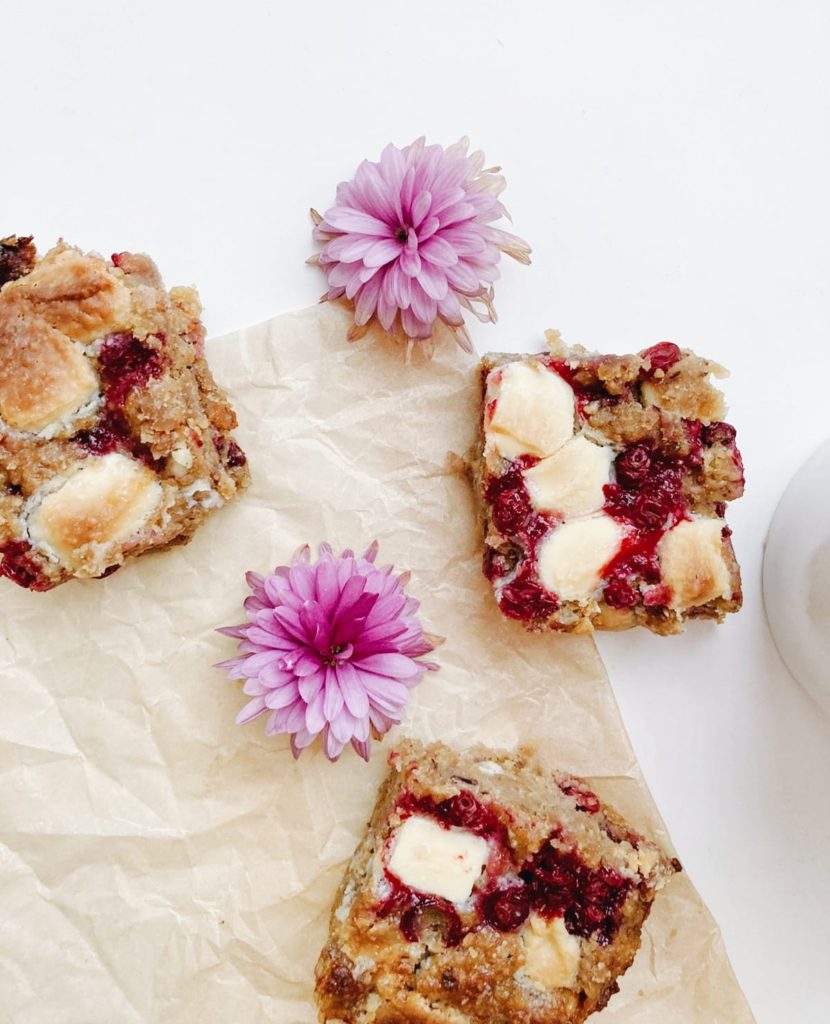 Syksy jatkuu ja nyt on se aika, että saa tuoreita puolukoita, ihanaa! Browniet ovat monelle varmasti tuttuja, mutta valkosuklaasta tehdyt blondiet ovat myös todella herkullisia! Välillä on kiva vaihtaa herkut terveellisempiin vaihtoehtoihin, joten kehitin reseptin terveellisistä puolukka blondieista. Nämä blondiet ovat täysin gluteenittomia, ne sisältävät vähemmän sokeria, sekä reilusti kuituja ja proteiineja. Korvasin tavallisen sokerin luomu kookossokerilla, jonka kerrotaan olevan terveellisempi vaihtoehto. Blondiet sisältävät myös kikherneitä, jotka antavat taikinalle kermaisen koostumuksen, sekä lisäävät ravintoarvoa, makuun vaikuttamatta. Kosteat, fudgemaiset blondiet maistuvat taivaallisilta ja voit herkutella niillä vaikka joka päivä!