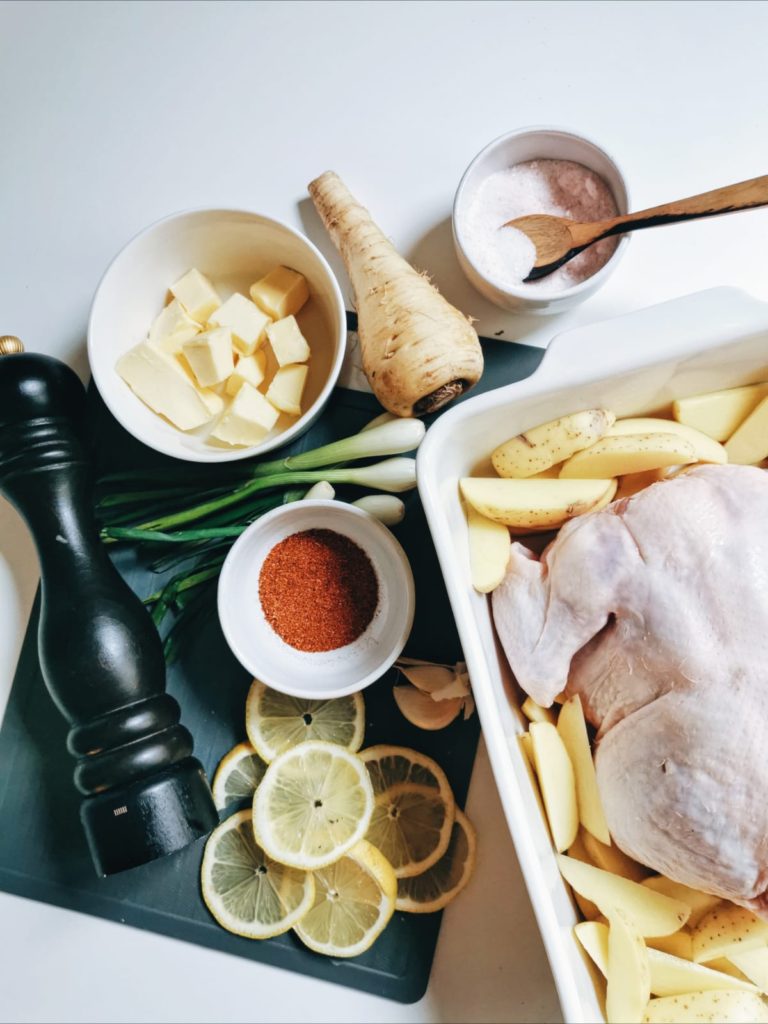 - 1 kokonainen kana (n. 1500g)