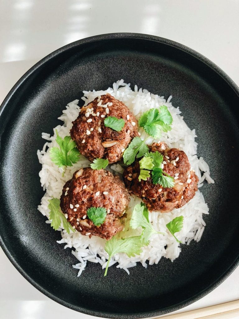 - Tarjoile valmiit korealaiset jauhelihapullat keitetyn riisin, kastikkeen ja raikkaiden kurkkutikkujen kanssa <3