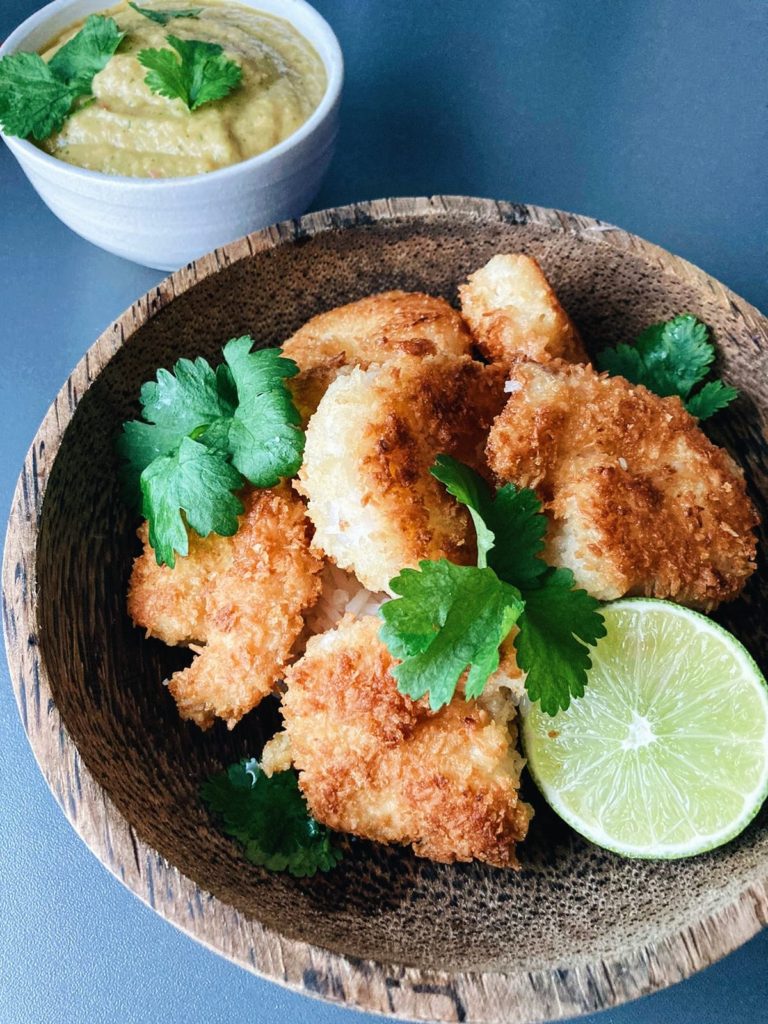 Silloin tällöin rupeaa tekemään mieli jättikatkarapuja ihan suunnattomasti. (Onko täällä muita merenelävien ystäviä? )Maistoimme ensimmäisen kerran friteerattuja katkarapuja Thaimaassa 2016 ja eräässä paikallisessa ravintolassa katkaravut maistuivat hieman erilaisilta, siihen mitä olimme tottuneet. Kysyimme tarjoilijalta ja tarjoilija vastasi, että leivittämisessä on käytetty myös kookoshiutaleita. Ajattelimme kehitellä meidän version näistä herkullisista kookoskatkaravuista. Jos olet kookoksen ja katkarapujen ystävä tässä on sulle superrapea resepti! Rapeat katkaravut dipattuna makeaan, tuliseen mangokastikkeeseen ovat todellista herkkua <3