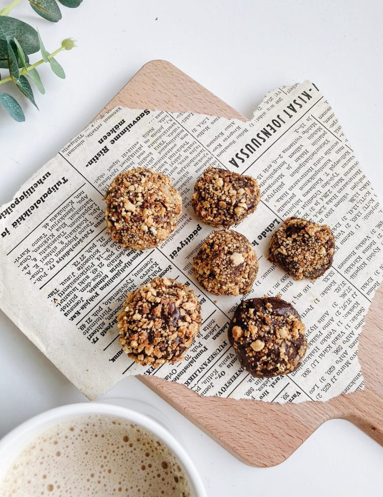 - Muotoile suklaakahvimassasta palloja ja pyörittele ne paahdetussa valkosuklaassa. Keitä kahvit ja nauti <3