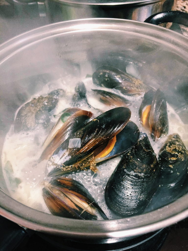- Lisää sitruunanmehu ja ota kattilasta pois kaikki simpukat, jotka eivät ole auenneet. Nauti <3