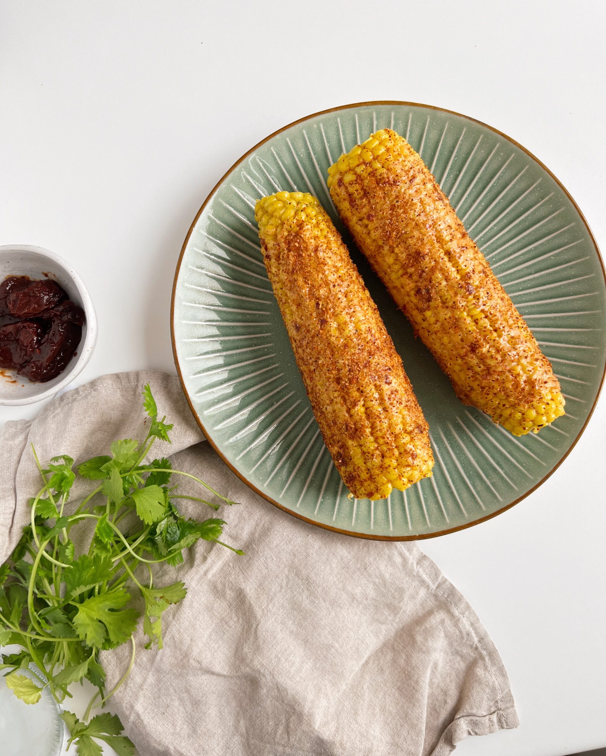 - Sivele maissin pintaan majoneesia ja ripottele päälle tajinia sekä tuoretta korianteria.
