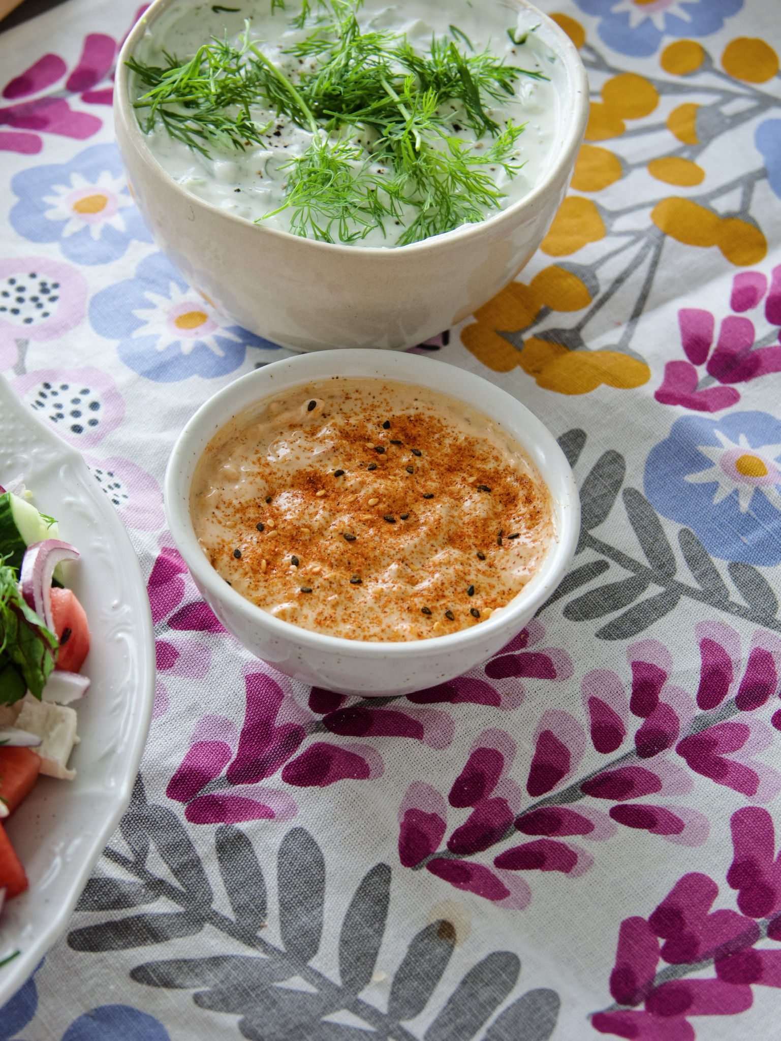 - Sekoita piimäkastikkeen ainekset sekaisin ja anna maustua jääkaapissa vähintääm puoli tuntia ennen tarjoilua.