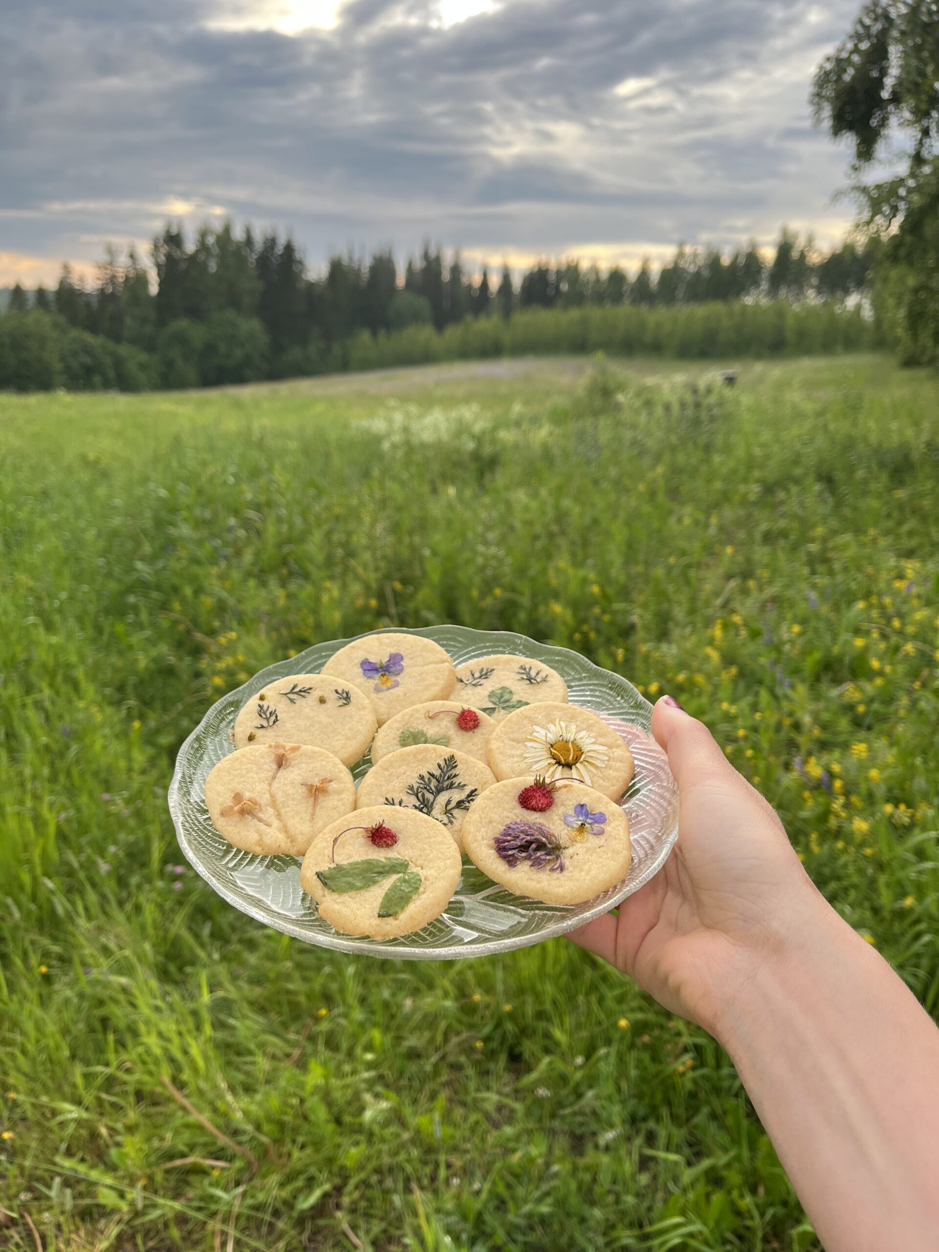 Kukkakeksit on kesän söpöin leivontaresepti. Kerää sun lemppari syötävät yrtit sekä kukat ja koristele keksit oman mielikuvituksen ja luonnon kauneuden avulla. Helppo taikina syntyy nopeasti. Voit pakastaa taikinan myös jolloin pääset lepomaan keksit aina kun tarvitset. Kun taikina on valmis, keksien kaulitseminen onnistuu kelposti kahden leivinpaperin välissä. Uunissa keksit saavat ihanan kullanruskean värin ja vastustamattoman tuoksun.