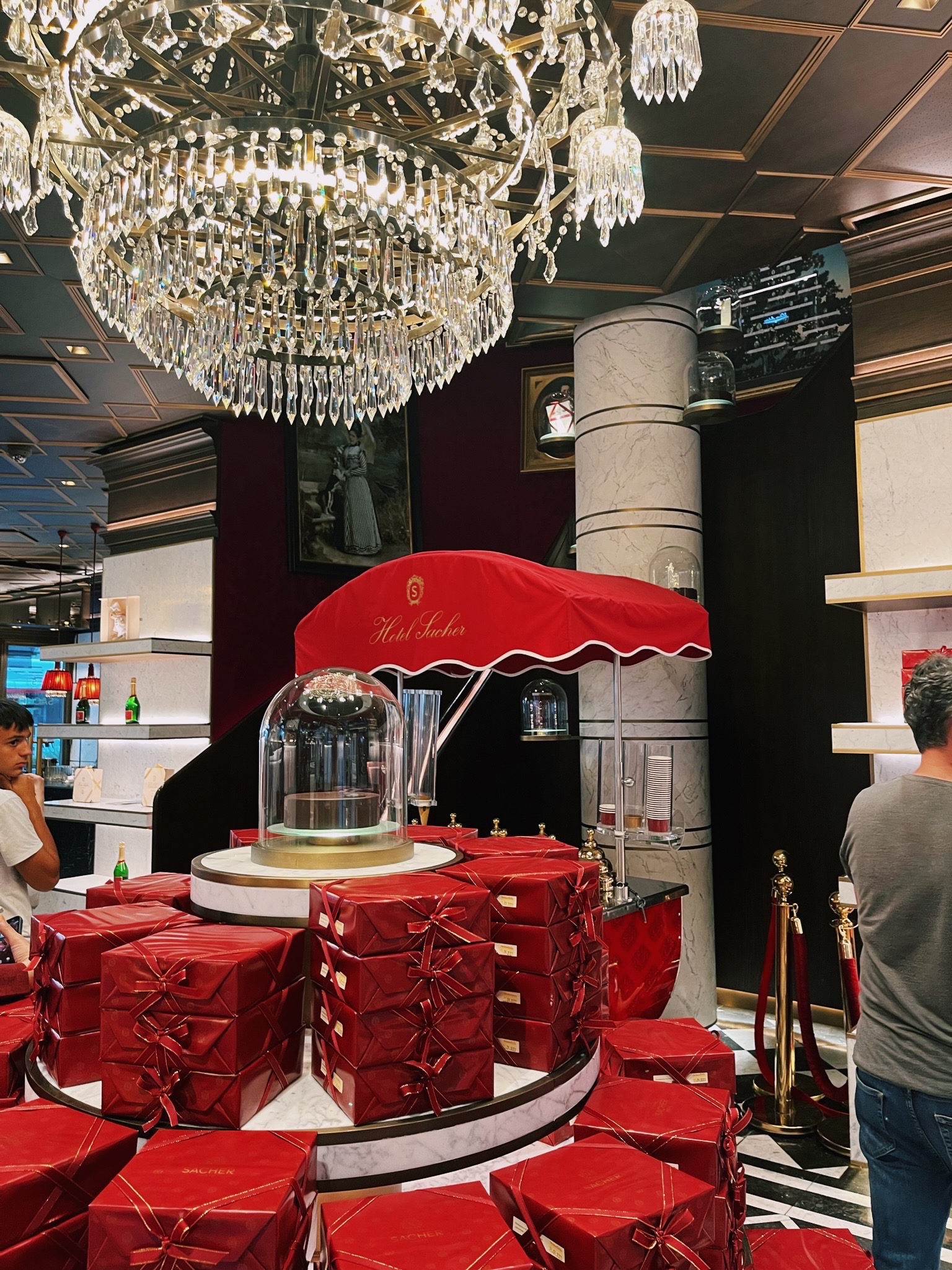 The original sacher kakku Wienin kuuluisassa Sacher-hotellissa. Sacher kakku on suklaakakkua ja aprikoosihilloa. Kakku kuorrutetaan paksuun tummaan suklaaseen. Jono kesti noin puoli tuntia, mutta kokemus oli sen arvoinen. Kahvilan sisustus on upea. Kakku sinäsä oli ylihintainen, mutta et voi jättää maistelematta kakun alkuperäistä versiota jot käyt Wienissä.