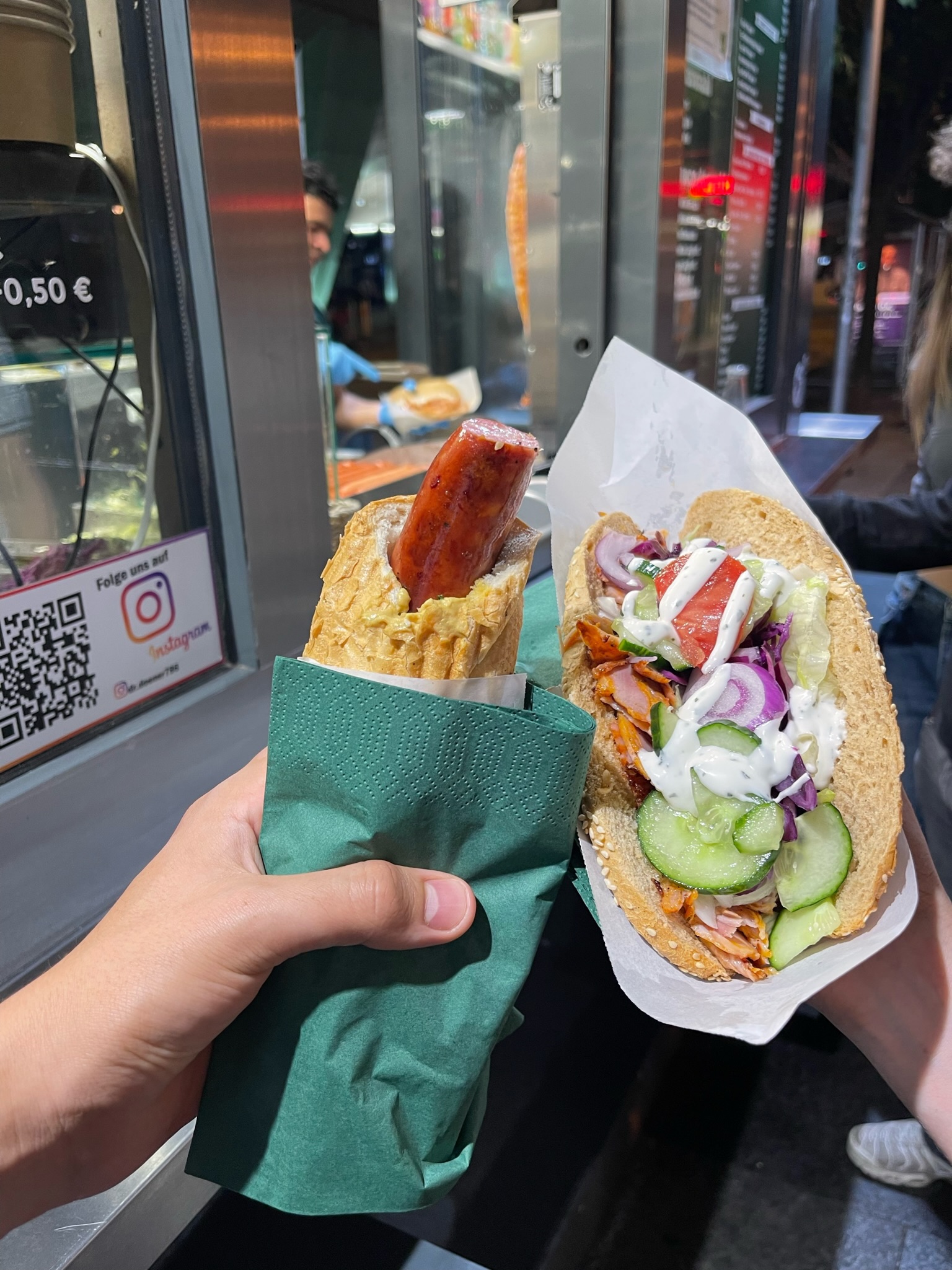 Ensimmäinen ilta toivotti tervetulleeksi Wienin katuruokakulttuuria. Maistelimme paikallisen hodarin ja dönerleivän Wien Mittessä sijaitsevassa