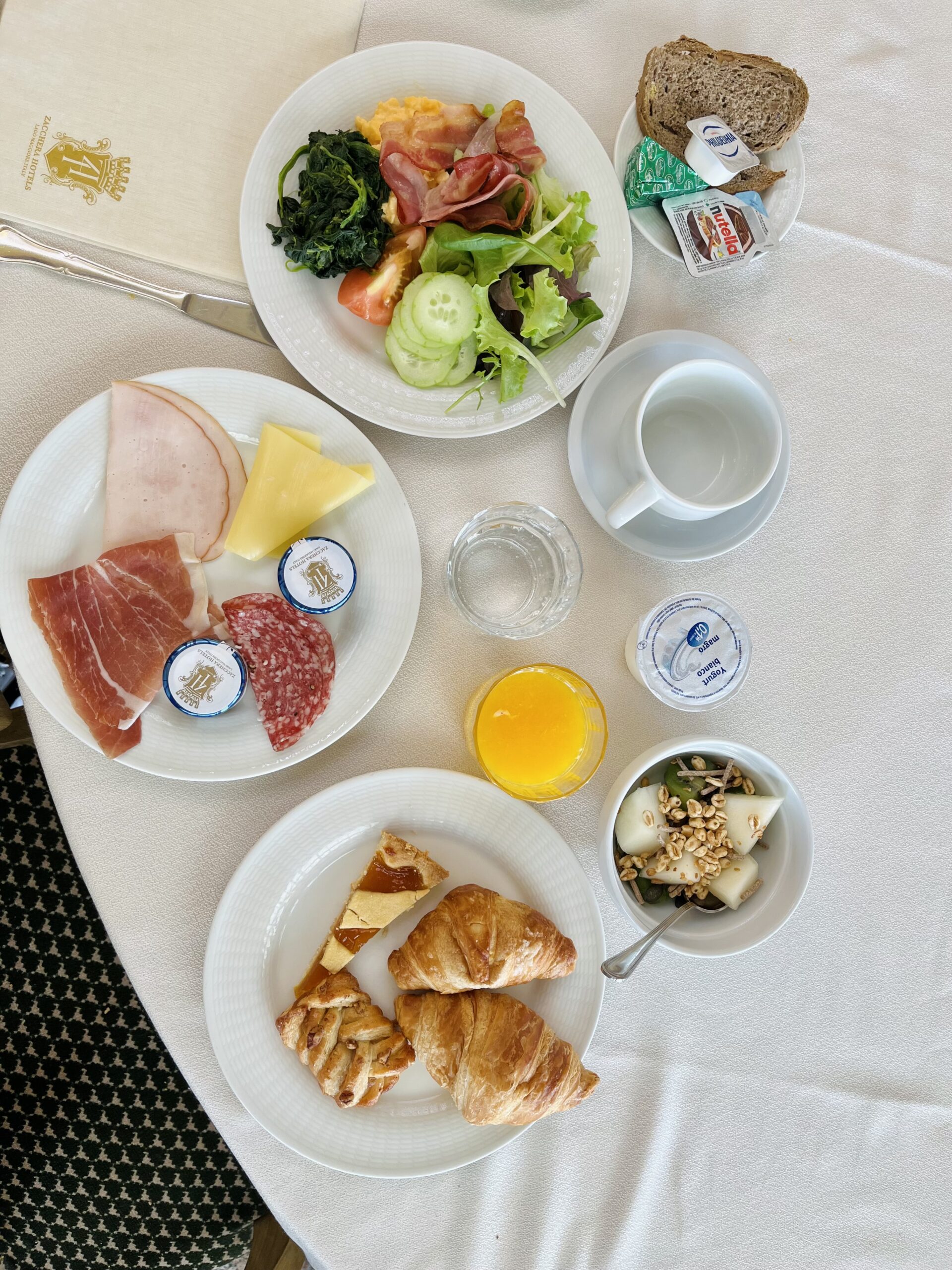 Majoituimme koko lomamme Hotel Borgo Vistalagossa. Aivan järven vieressä sijaitseva hotelli tarjosi yön aamiaisen kera noin 100 euroa. Aamiainen oli kuivakakkua, paahtoleipää marmeladilla, italialainen cappuccino, appelsiinimehu ja croissantteja. Saimme tuoreita hedelmiä pyydettäessä.